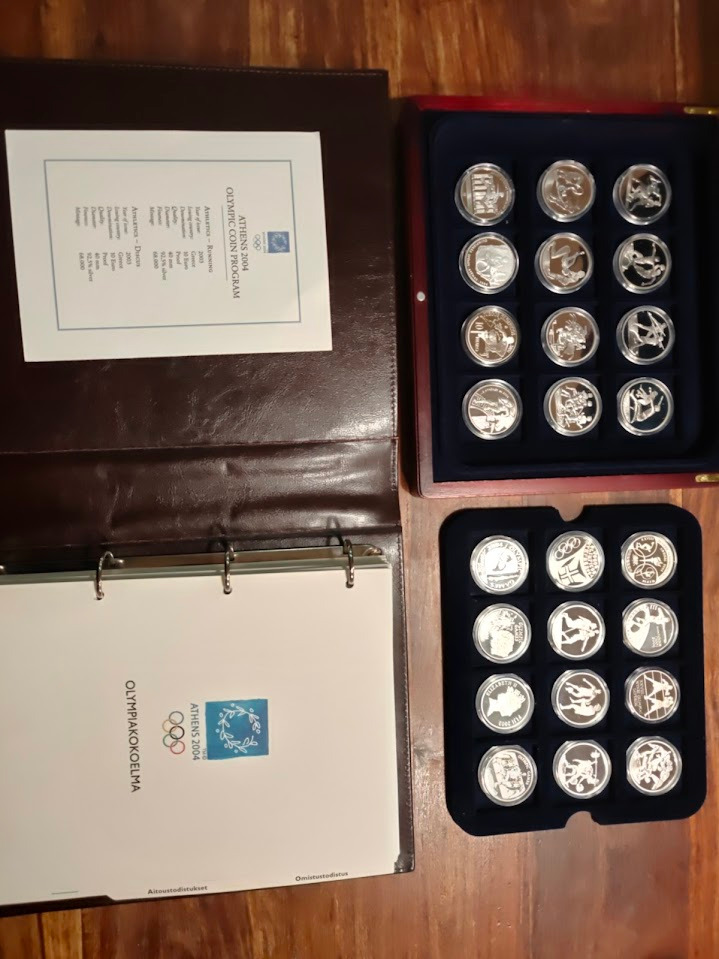 24 kpl kolikoita, Ag yht. 690 g, kokonaispaino 746 g
